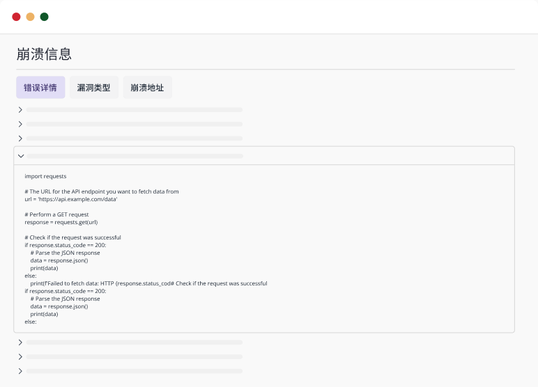展示漏洞相关的函数、调用栈和源代码片段,直观定位问题。
