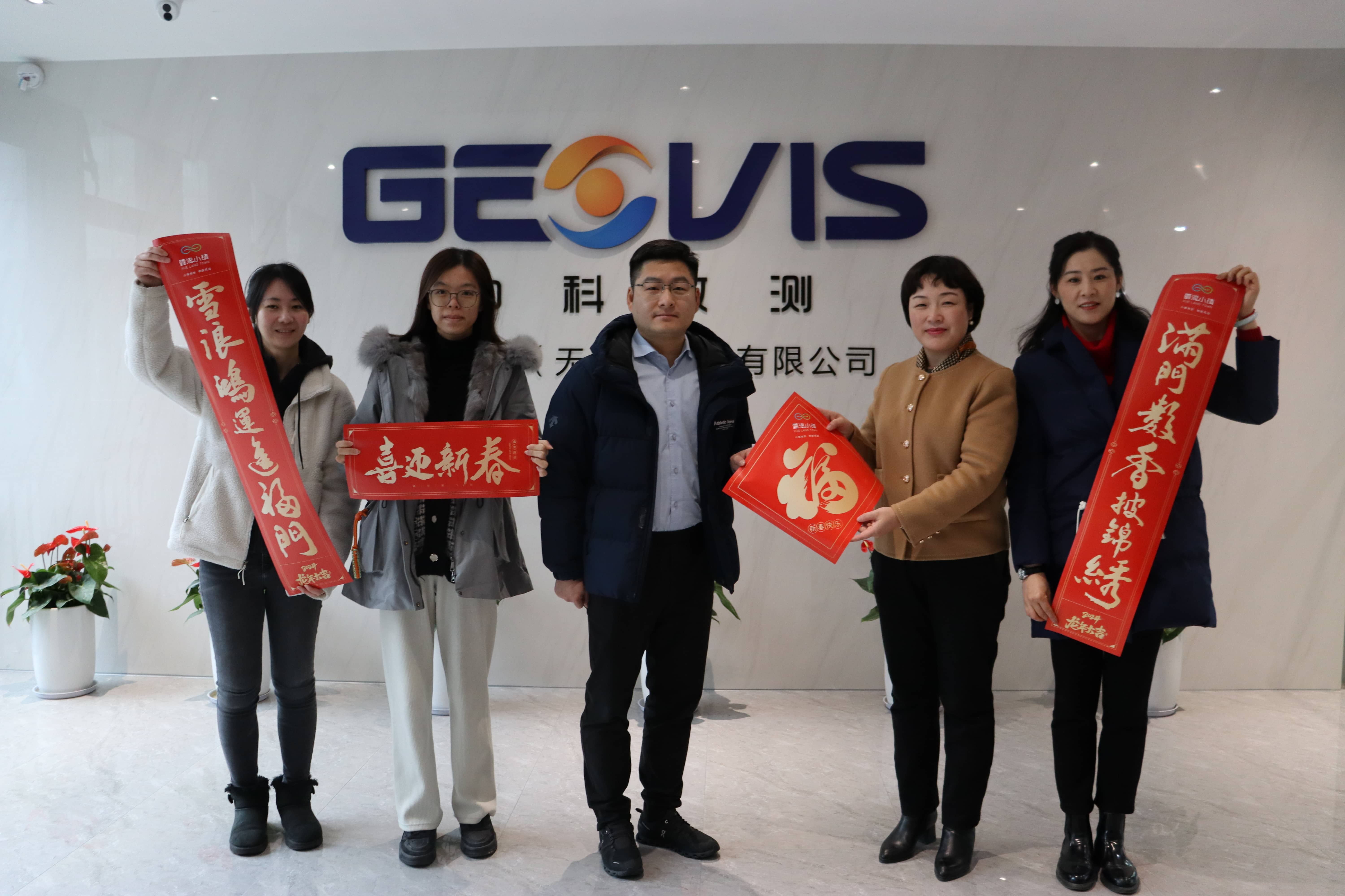 (中科数测无锡办公区员工在春联前合影留念,展望未来,喜迎新春)