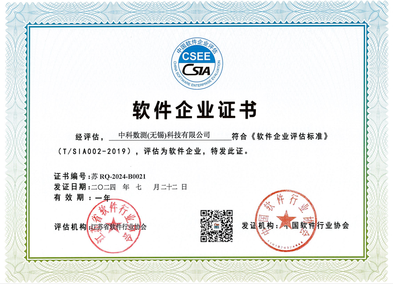 近日,中科数测在江苏省软件行业协会专家评审组的严格评估下,凭借卓越的研发实力与规范化管理体系,荣获由中国软件行业协会颁发的“中国软件企业”及“中国软件产品”双重认证,即业界公认的“双软企业”资质。这一殊荣不仅彰显了公司在软件行业的地位,也标志着中科数测在推动中国软件产业创新发展、增强国际竞争力方面践行着自己的企业责任。
